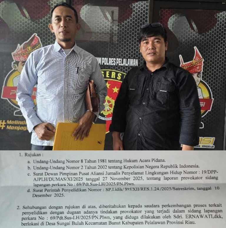 Update Kasus Dugaan Provokator Sidang Lapangan: AJPLH Tagih Perkembangan Penyelidikan di Polres Pelalawan